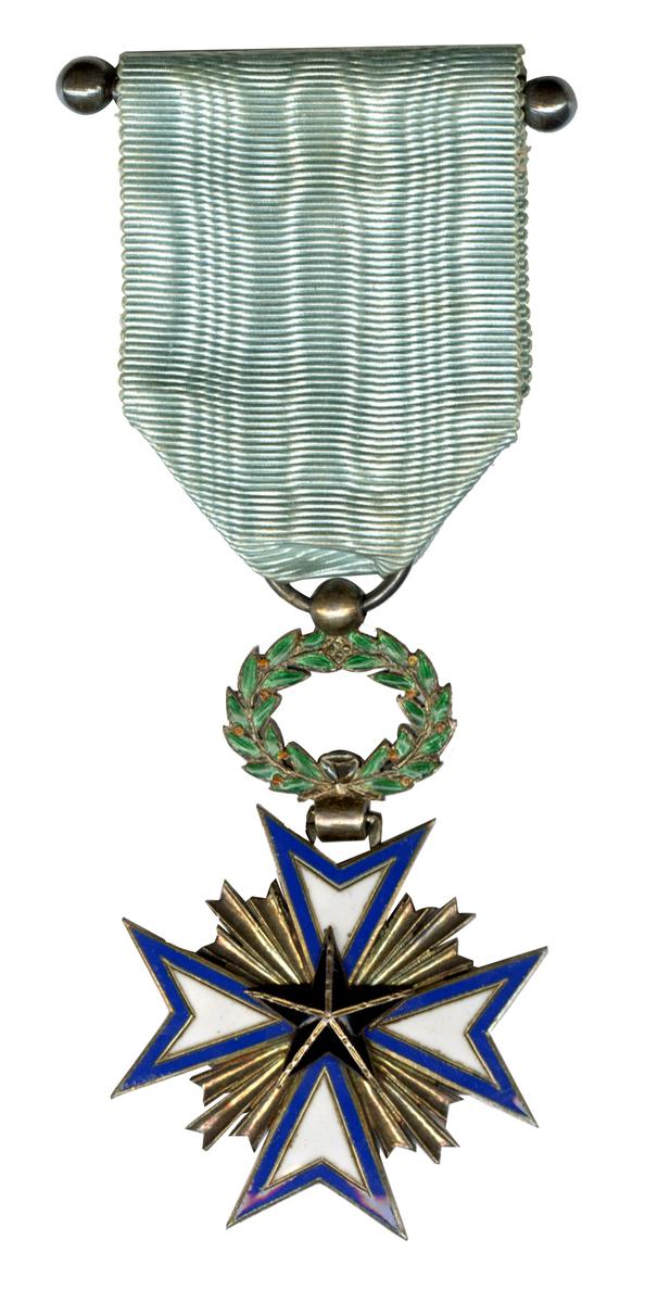 L'ordre de l'Étoile noire est institué à Porto-Novo par le roi Toffa en décembre 1889. Reconnu par le gouvernement français en 1894 après l'établissement des nouveaux statuts du 30 août 1892 qui accordent cette distinction à tous ceux qui travaillent au développement de l'influence française à la côte occidentale d'Afrique. Il est remplacé en 1964 par l'Ordre national du Mérite.Inventory number: 2009.0.43