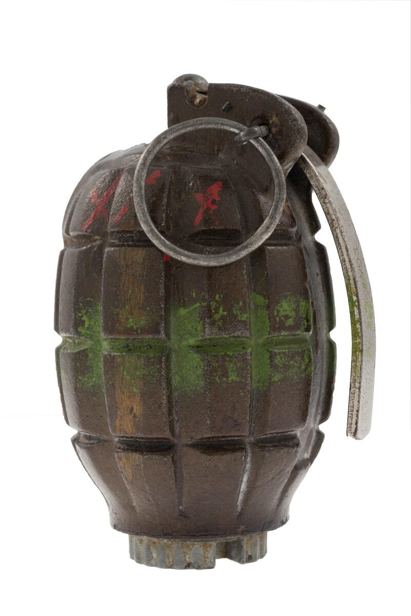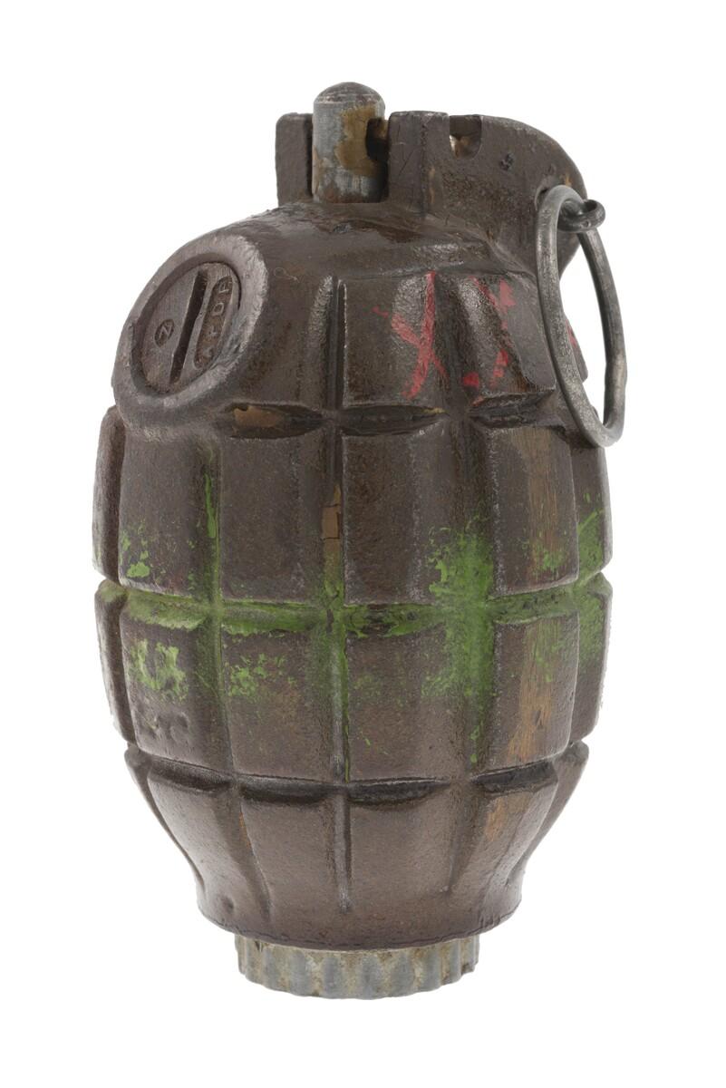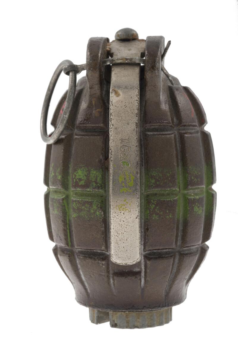 La grenade à fragmentation Mills Bomb est la grenade à main standard de l'armée britannique de 1915 à 1972. La n°5 Mk I est la première série de cette grenade introduite en 1915 et largement répandue l'année suivante.Inventory number: N1913.9