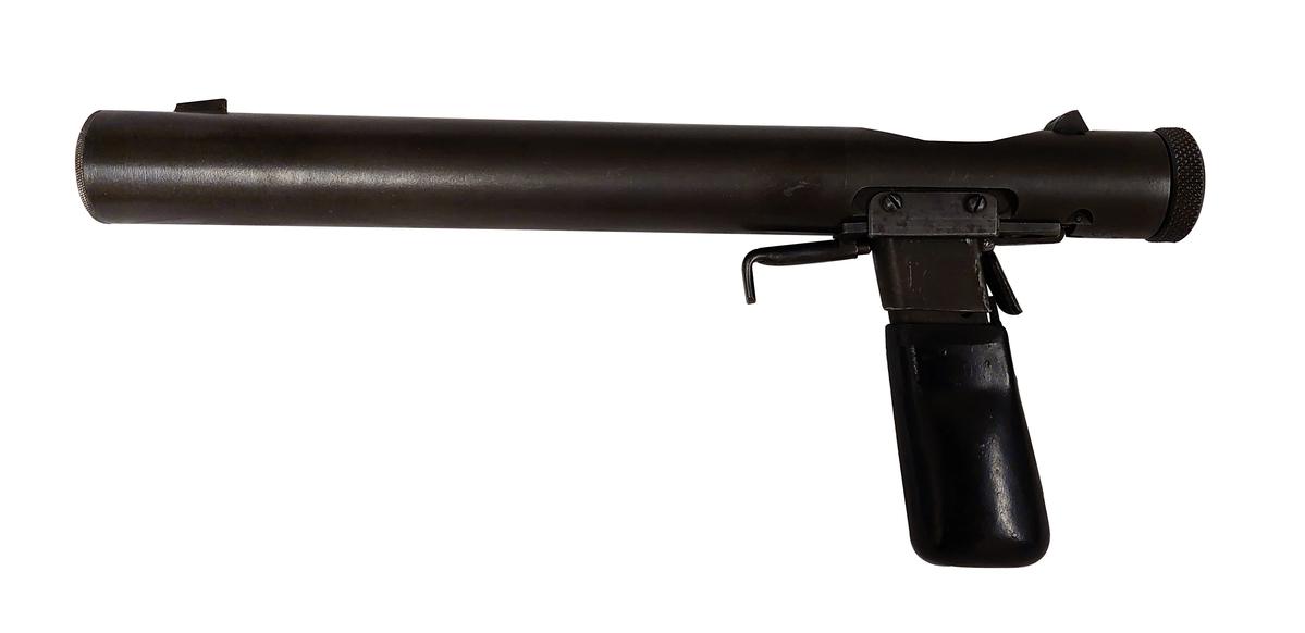 Ce pistolet de calibre 765 mm (.32) est un des premiers modèles silencieux utilisé notamment pour l'élimination discrète de sentinelles ennemies. Fabriqué à partir de 1943 il ne porte pas de marquage. Il équipait les services spéciaux britanniques du Special Operations Executive (SOE) les Américains de l'Office of Strategic Services (OSS) ainsi que divers réseaux de résistance en Europe.Inventory number: 2009.15.1