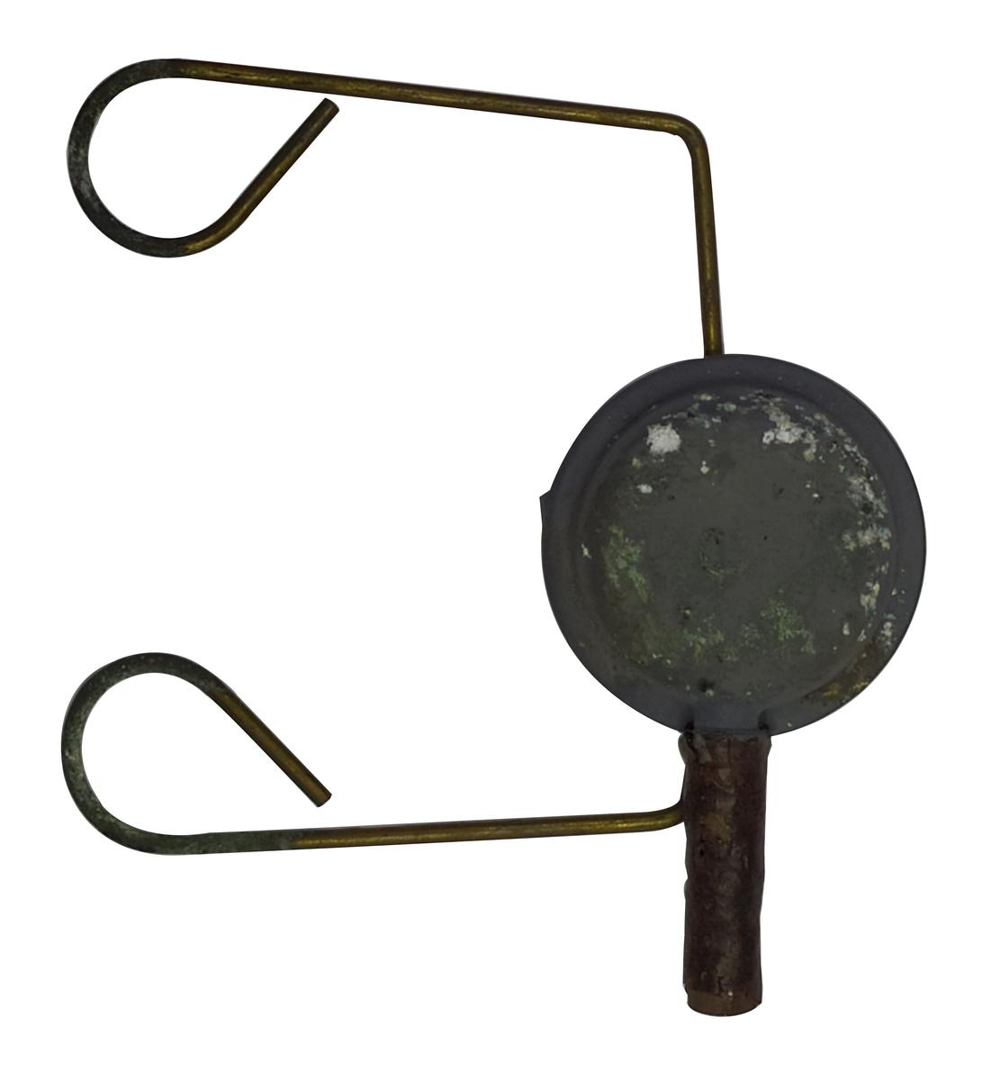Allumeur à pression spécifique pour le sabotage de voie ferrée. L'allumeur est relié par une mèche rapide à un pain de plastic le plus souvent fixé sur le montant bas du rail. La mise à feu de la charge est déclenchée par le passage des roues de la locomotive sur l'allumeur.Inventory number: N2759