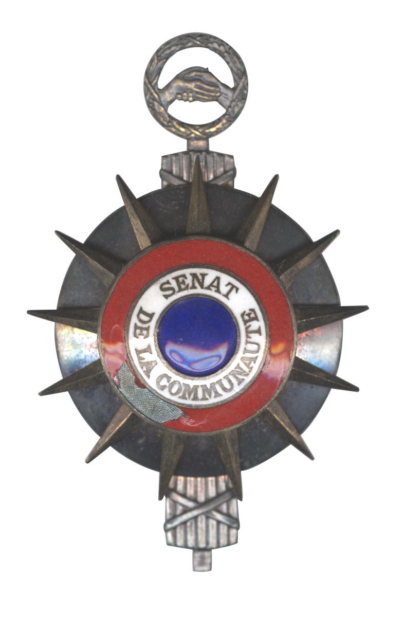 Le Sénat de la Communauté est l'une des institutions créées par la Constitution du 4 octobre 1958 . Destinée à remplacer l'Union française la Communauté est constituée des États africains nouvellement indépendants mais souhaitant conserver des relations particulières avec la France et ayant accepté la nouvelle constitution lors du référendum du 28 septembre 1958. En raison de la vague des indépendances africaines de 1960 le sénat de la communauté disparait en mars 1961.Inventory number: 2024.3.32