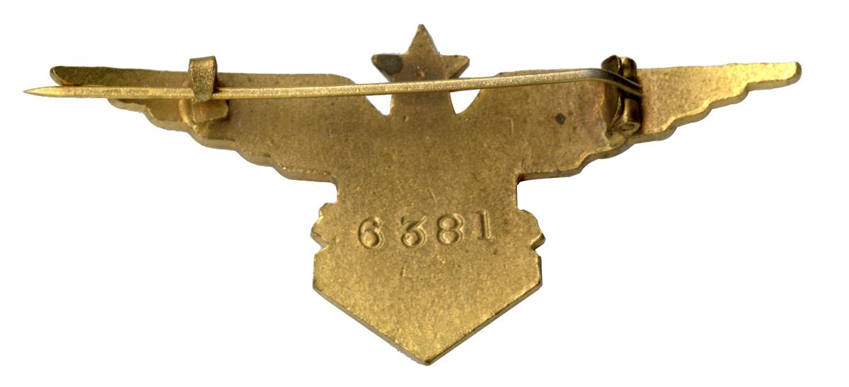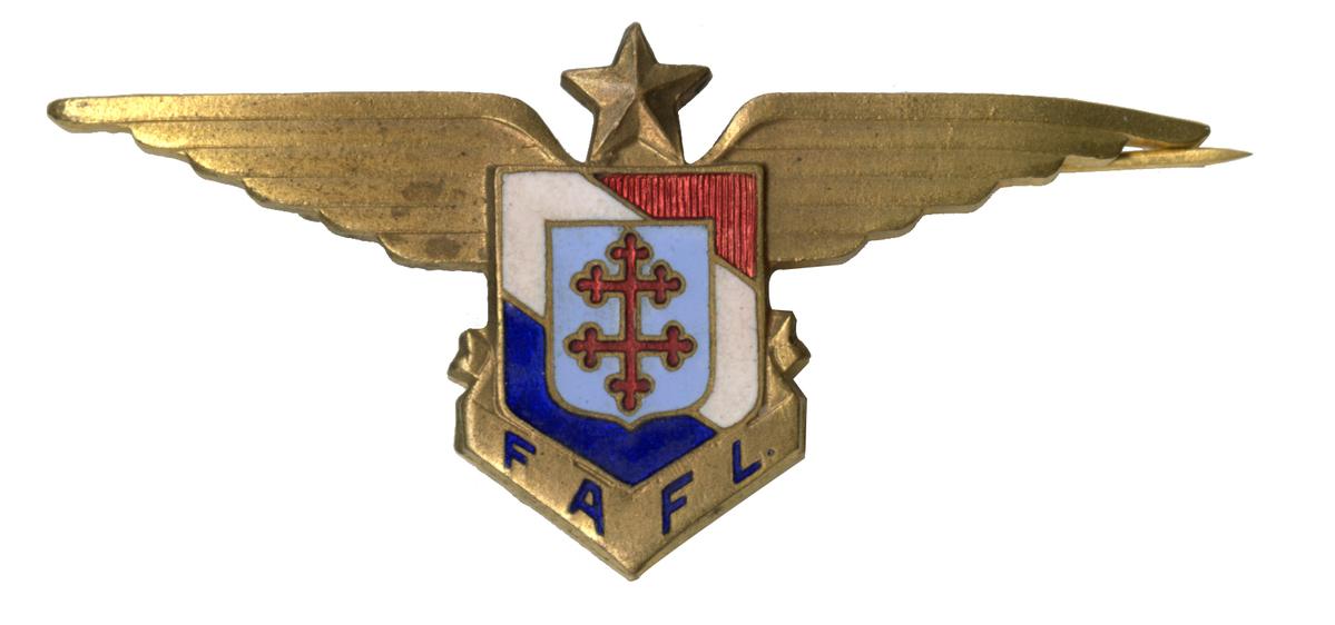 L'insigne des Forces aériennes françaises libres dessiné par le soldat Jacques Drabier ancien élève des Beaux-Arts fut réalisé à partir d'octobre 1940 à Londres par l'orfèvre Campbell à 200 exemplaires. Ce fut ensuite la maison Gaunt qui se chargea de les fabriquer. Ils étaient numérotés en principe par ordre d'ancienneté dans les FAFL.Inventory number: 2024.3.35