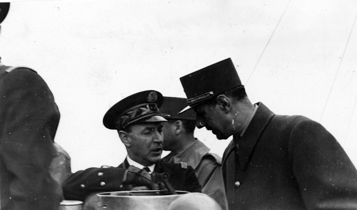 L'amiral Thierry d'Argenlieu et le général de Gaulle à bord de la "Combattante"