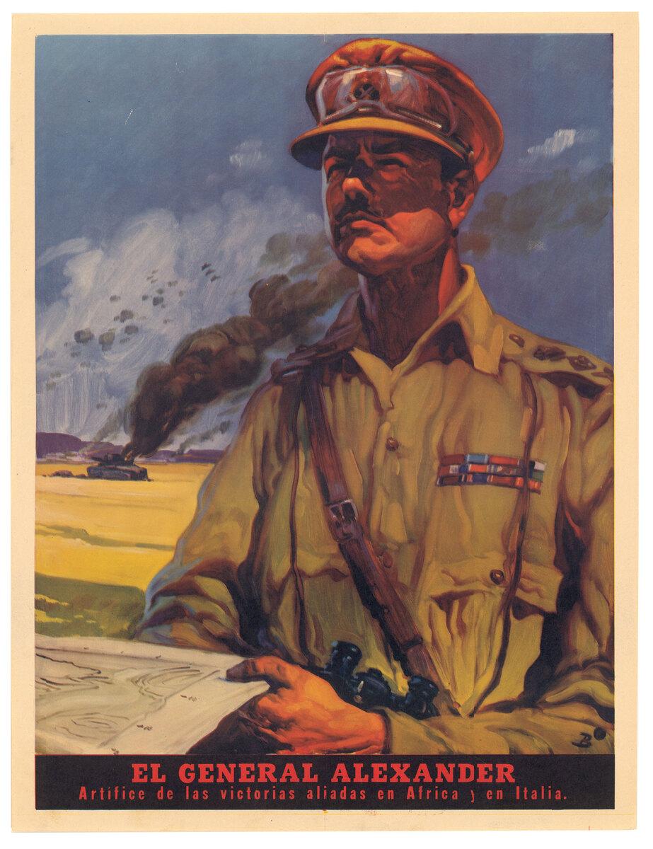 Affiche : "El general Alexander artifice de las victorias aliadas en Africa y en Italia"