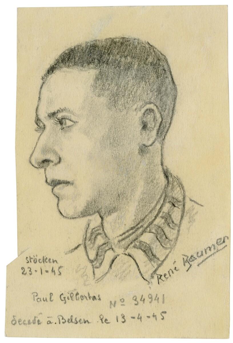 "Paul Gilbertas, n° 34941, décédé à Belsen le 13-4-45"