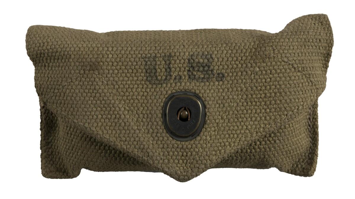 En 1942 quand le Medical Department décide de placer avec le pansement des comprimés de Sulfadiazines la pochette à pansements M-1924 se révèle exigüe et il devient difficile d'extraire le pansement dans l'urgence. Pour ce faire le Quartermaster Corps effectue une modification dans la contenance de la pochette qui donne naissance à la Pouch First Aid Packet M-1942.Numéro d'inventaire : 2011.0.17
