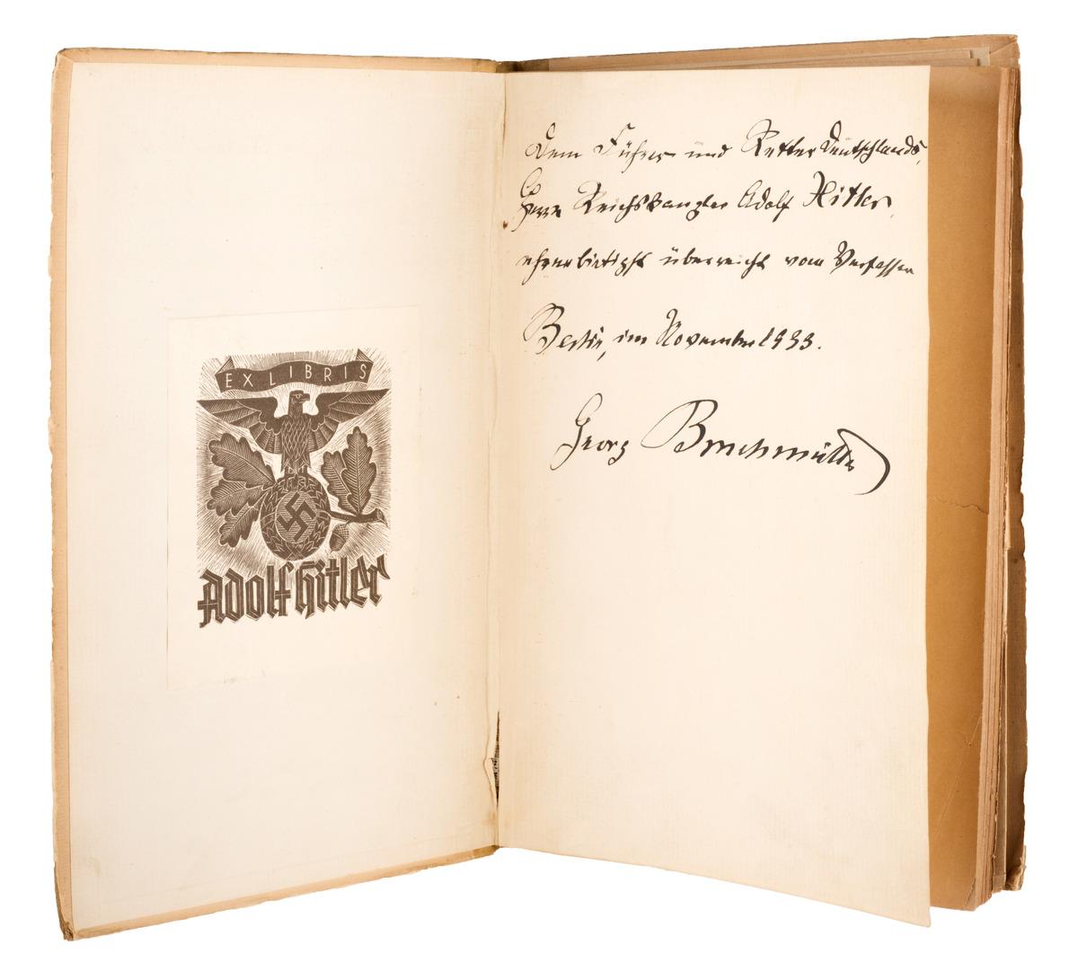 Cet ouvrage relié sur l'artillerie provient des collections personnelles d'Adolf Hitler à Berchtesgaden où il a été pris en mai 1945 par Jean Nanterre officier de la 2e DB. Édité en 1926 par le Verlag Offene Worte il comprend un ex libris Adolf Hitler et une dédicace de l'auteur datée de novembre 1933.Numéro d'inventaire : N3379