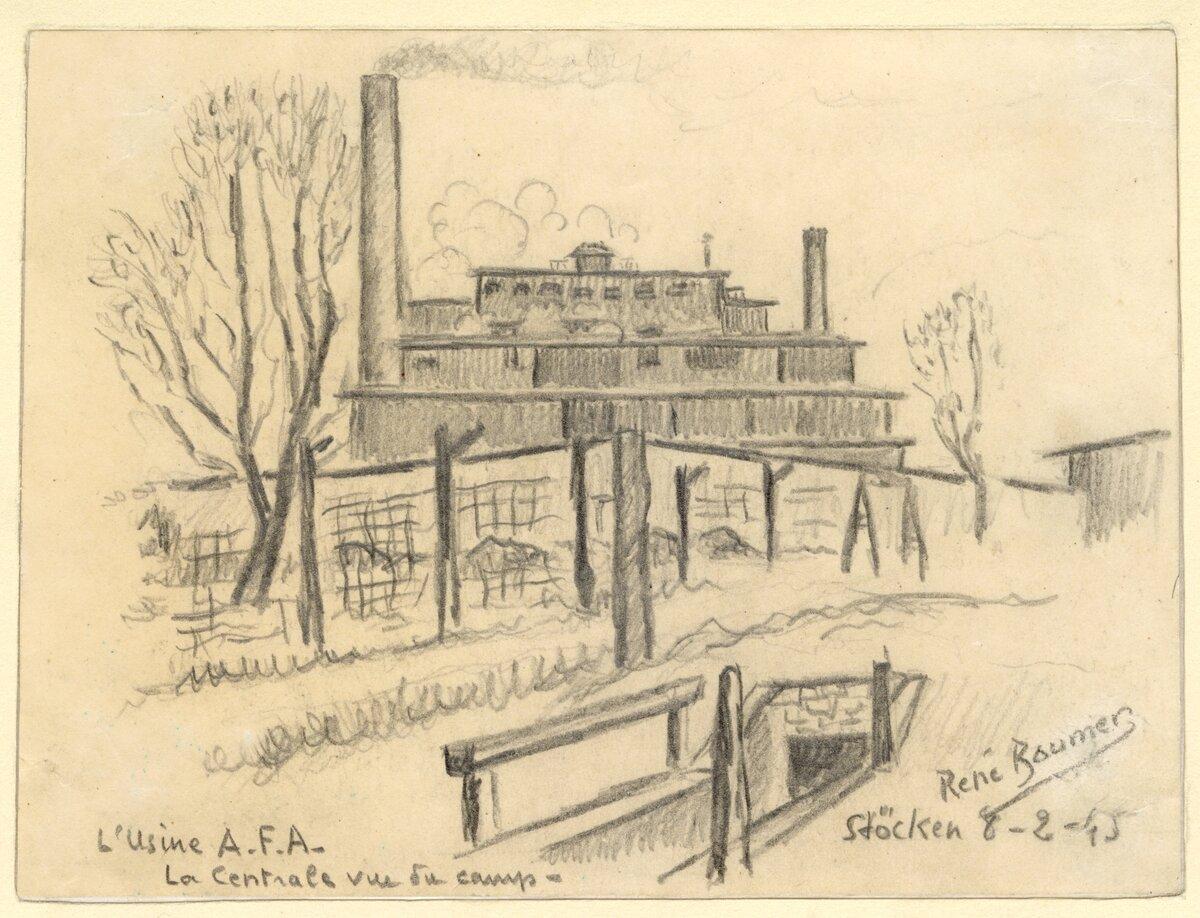 "L'usine A.F.A, la centrale vue du camp. Stöcken 8-2-45"
