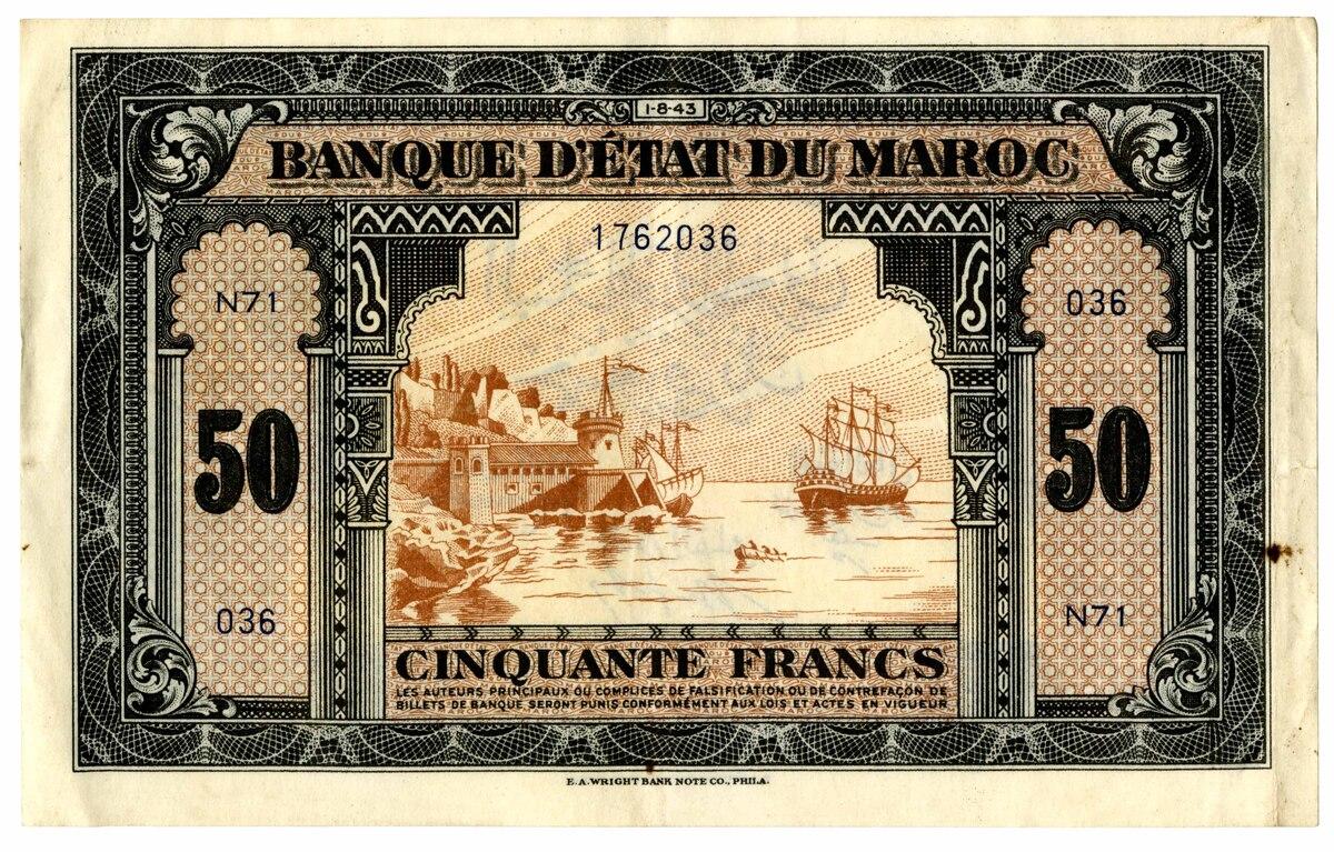 Billet de 50 Francs de la banque d'État du Maroc de Michel Abalan