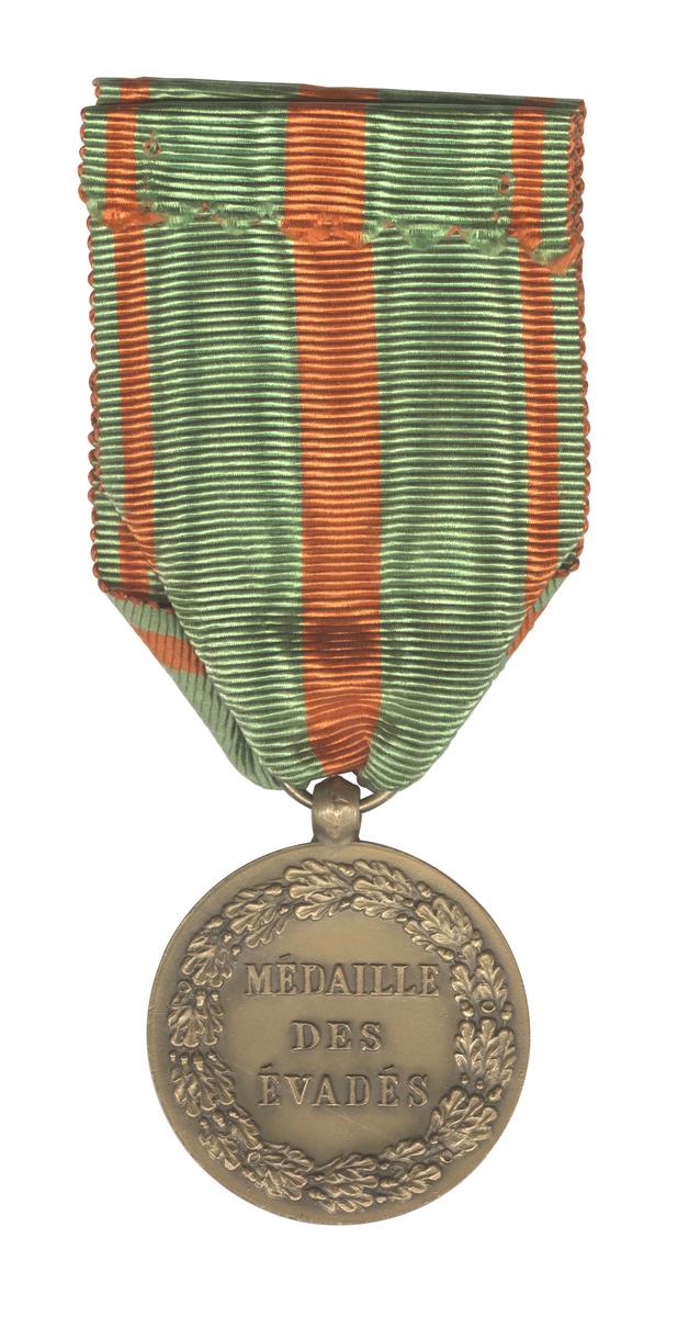 La médaille des évadés est instaurée à la suite de la demande de plusieurs associations d'évadés dont l'Union nationale des évadés de guerre. Un décret du 2 octobre 1926 précise les dispositions et modèle de l'insigne et du ruban. La médaille a été accordée aux évadés de la Seconde Guerre mondiale par une ordonnance du comité français de la Libération nationale du 7 janvier 1944. Son attribution a été arrêtée en 1968 avant d'être rouverte en 1992 mais uniquement pour des faits d'évasion remontant à la Seconde Guerre mondiale. La médaille des évadés est considérée comme un titre de guerre. Cette médaille a été remise à Londres à Pierre Billotte pour s'être évadé d'Allemagne avant d'être de nouveau interné en URSS puis de rejoindre la France libre en septembre 1941.Numéro d'inventaire : 2022.15.11