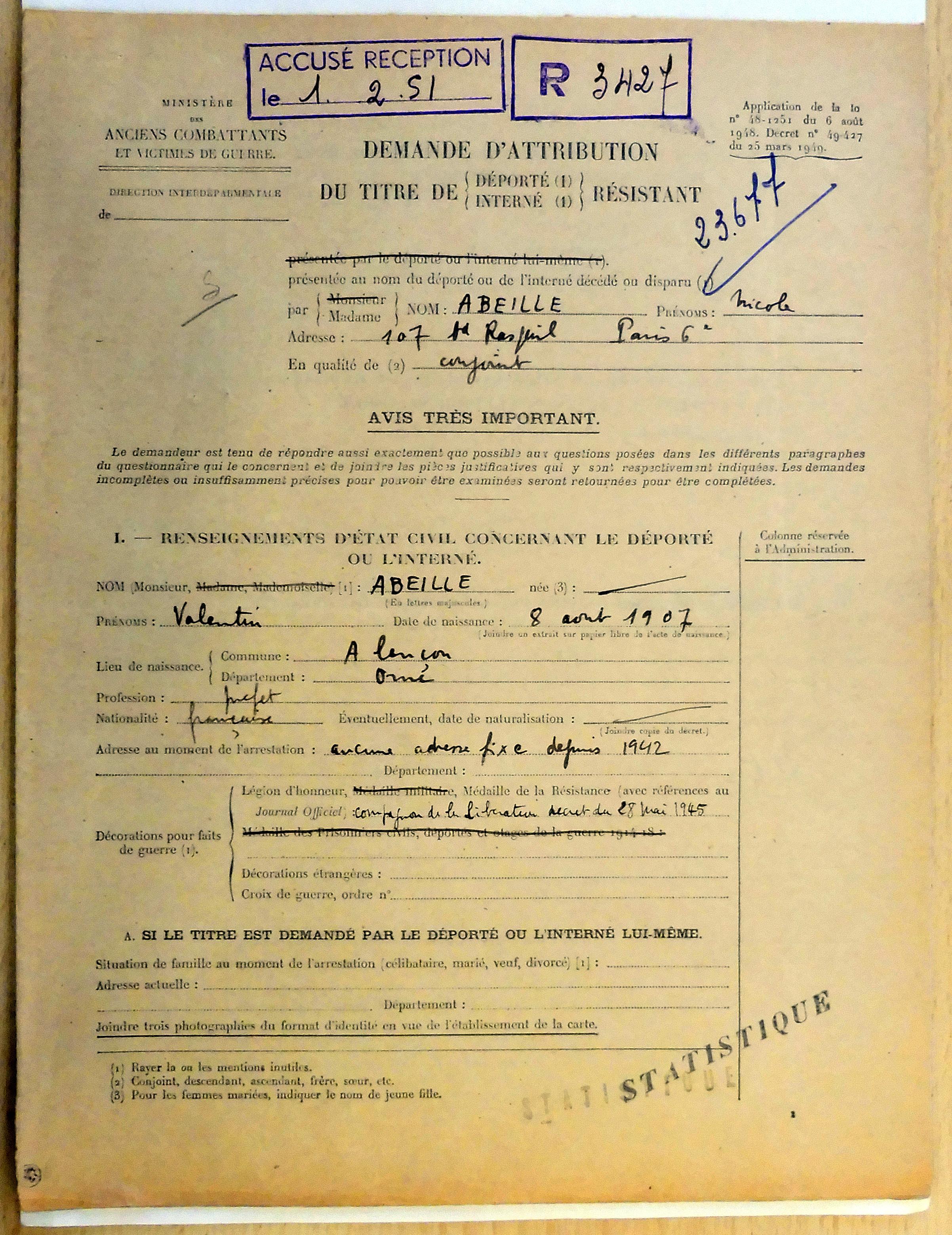- Renseignements : l’Ordre de la Libération fait remplir en 1948, puis en 1963, par les Compagnons ou le représentant du Compagnon disparu, des fiches synthétiques de renseignements d’état-civil comprenant d’autres éléments comme les décorations ;