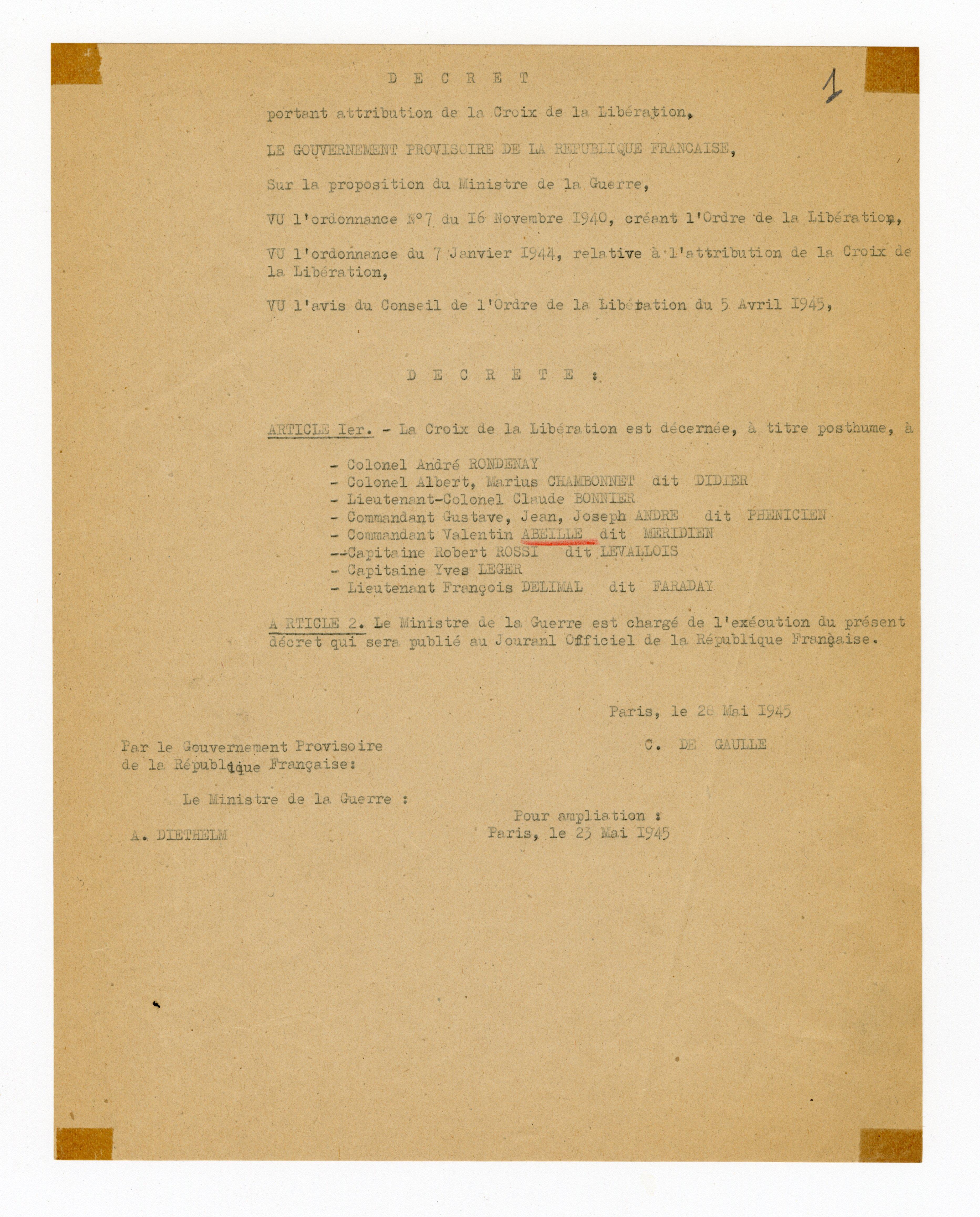 Depuis la création de l’Ordre de la Libération, la chancellerie possède un dossier individuel pour chaque Compagnon. Ces dossiers sont d’abord alimentés par des pièces relatives à l’attribution de la croix de la Libération : courriers, mémoire de proposition, ampliation du décret, reçu du diplôme…