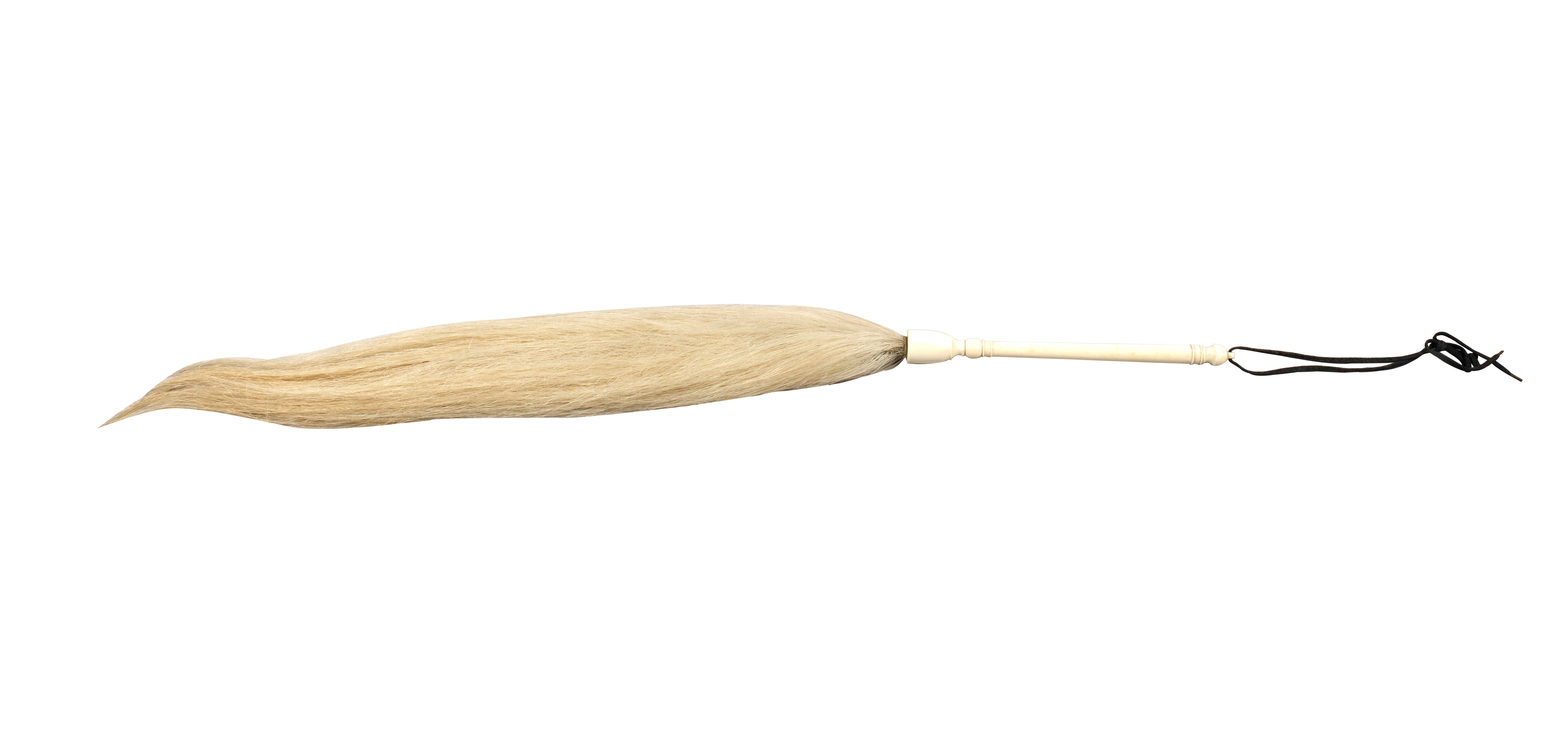 Ce chasse-mouches en ivoire et crin de cheval fut offert à Gaston Palewski lorsqu’il occupait le poste de commandant des Forces françaises libres de l’Est africain à partir de mars 1941. Il participa activement à la campagne d’Ethiopie contre les Italiens avant d’être nommé directeur de cabinet du général de Gaulle à Londres en septembre 1942 et ce jusqu’en janvier 1946.