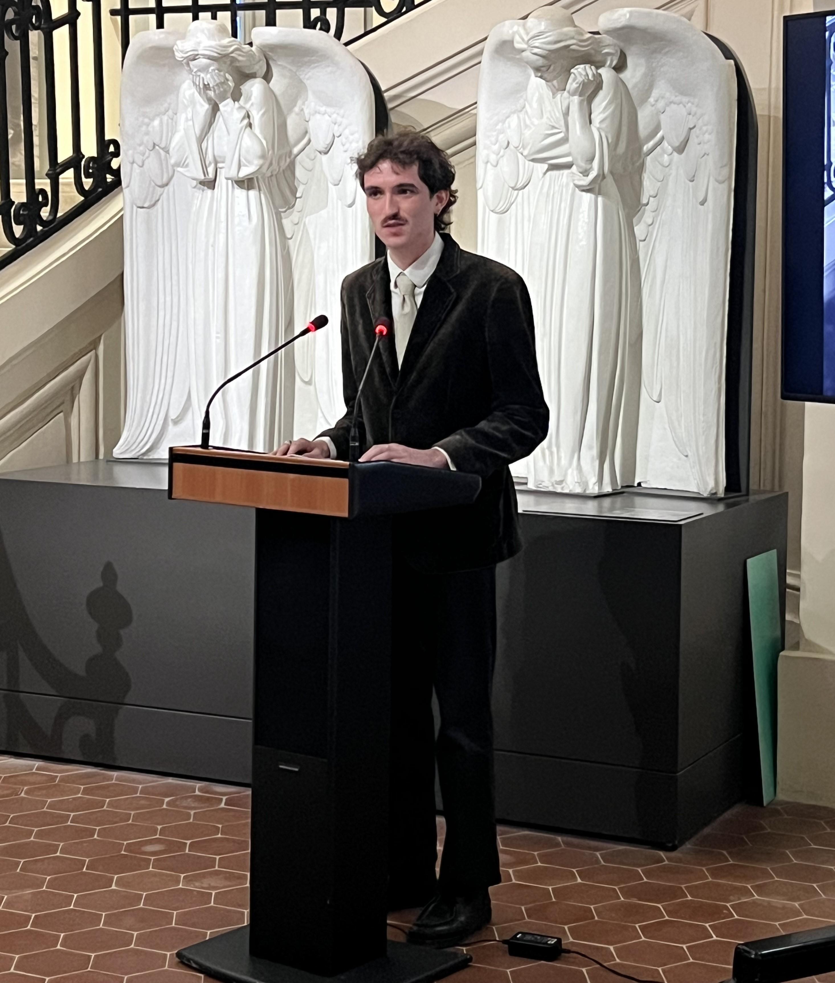 Le lauréat a pris la parole pour remercier la SAMOL, les membres du jury et son directeur de mémoire, monsieur Guillaume Piketty, professeur d'histoire contemporaine à Sciences Po Paris.