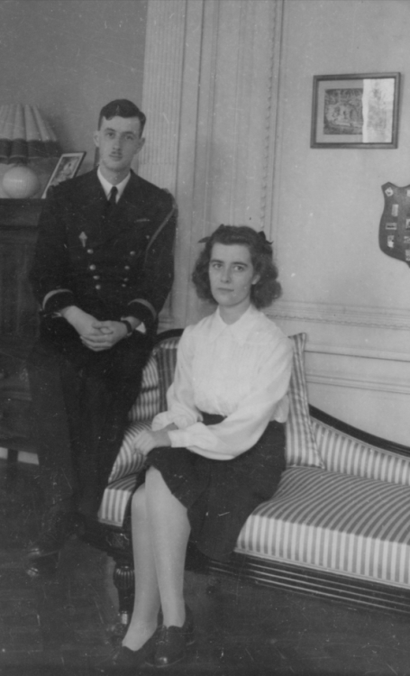 Philippe et Elisabeth de Gaulle à Neuilly-sur-Seine en 1945.