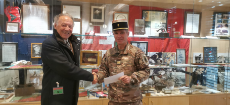Le 14 novembre, au nom de l’AFCL, Alain de Tedesco, délégué AFCL pour l’Aveyron et le Lot, a remis un chèque de 2.000 € au lieutenant-colonel Stéphane Fournier, commandant en second de la 13e Demi-brigade de Légion étrangère pour la réalisation d’une crypte mémorielle en l’honneur des 98 légionnaires Compagnons de la Libération. Un accueil très chaleureux lui a été réservé. La crypte est en cours d’aménagement dans une ferme du XIVe siècle et devrait être inaugurée au printemps 2026.