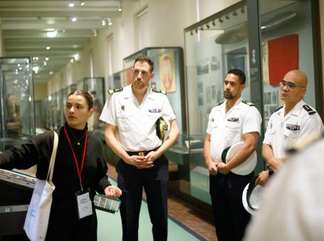 Le 3 octobre, une partie de l’équipage du patrouilleur outremer Philippe Bernardino a visité le musée. Leur parrain étant Compagnon de la Libération, ce fut l’occasion pour eux de découvrir les collections permanentes mais surtout de rencontrer notre nouveau délégué national, le général Burkhard, puis d’échanger avec François Broche, fils du commandant Broche sous les ordres duquel Philippe Bernardino avait servi au sein du Bataillon du Pacifique.