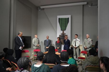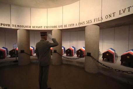 À l'occasion de sa prise de fonction en tant que délégué national de l'Ordre de la Libération le 1er octobre dernier, le général d’armée (2S) Thierry Burkhard s’est recueilli dans la crypte du mémorial de la France combattante au Mont-Valérien où repose le dernier Compagnon de la Libération, Hubert Germain.