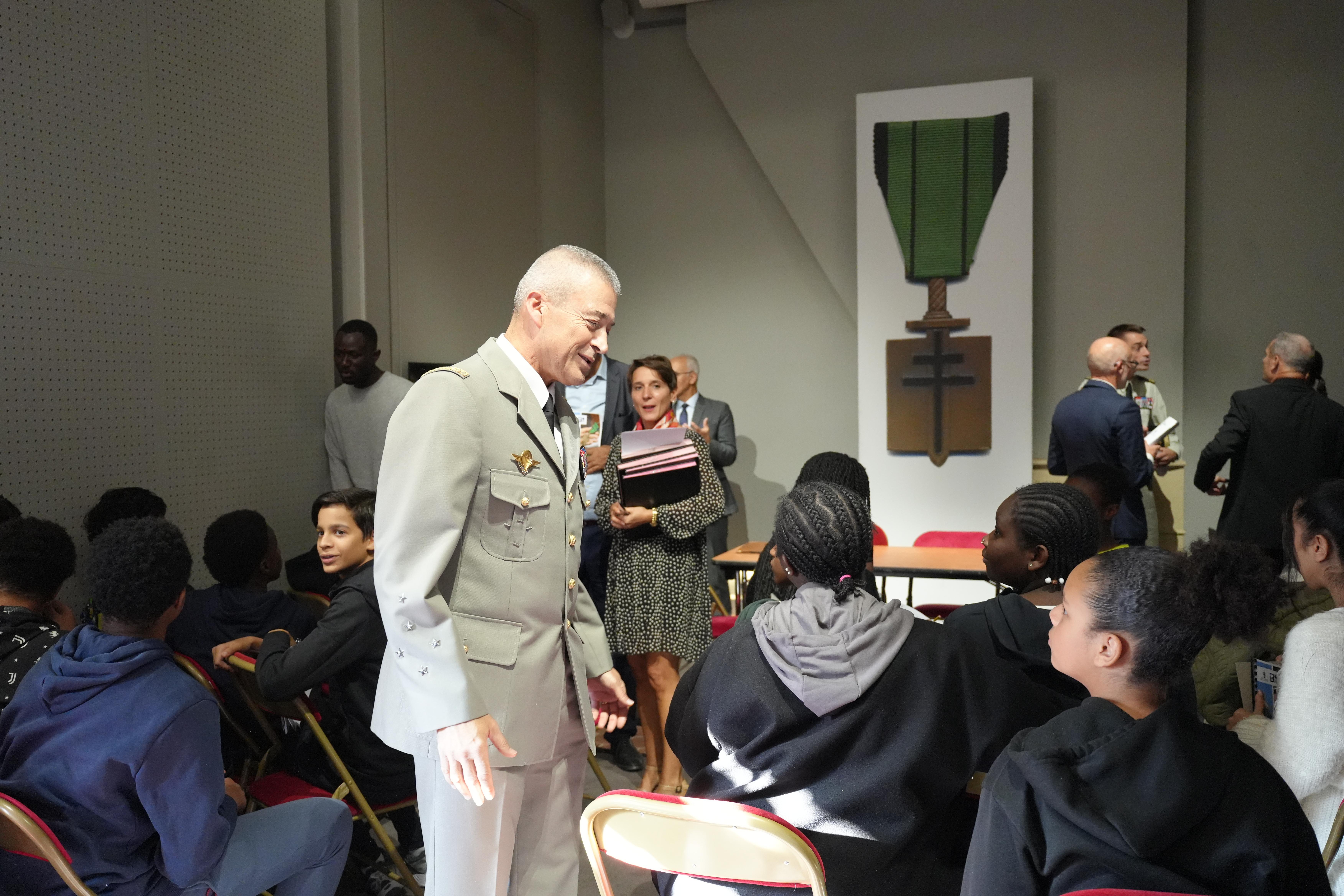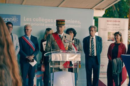 Le 7 octobre, le général Burkhard a assisté à la cérémonie de baptême du collège Hubert Germain de Saint-Chéron, aux côtés des élèves et des élus.