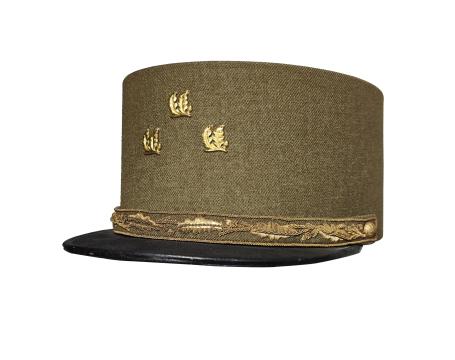 Cette très rare pièce d’uniforme de directeur général de zone d’occupation française en Allemagne (ZOF) répond à la note du 31 juillet 1945 qui décrit les insignes de grade des « Assimilés spéciaux pour les territoires occupés » (ASTO). Les fonctionnaires supérieurs détachés, ainsi que les contractuels non assimilés dans le corps des ASTO, portent de 1 à 4 broderies en forme de feuilles de chêne ; normalement sur les passants d’épaule et semble-t-il plus rarement sur le képi.