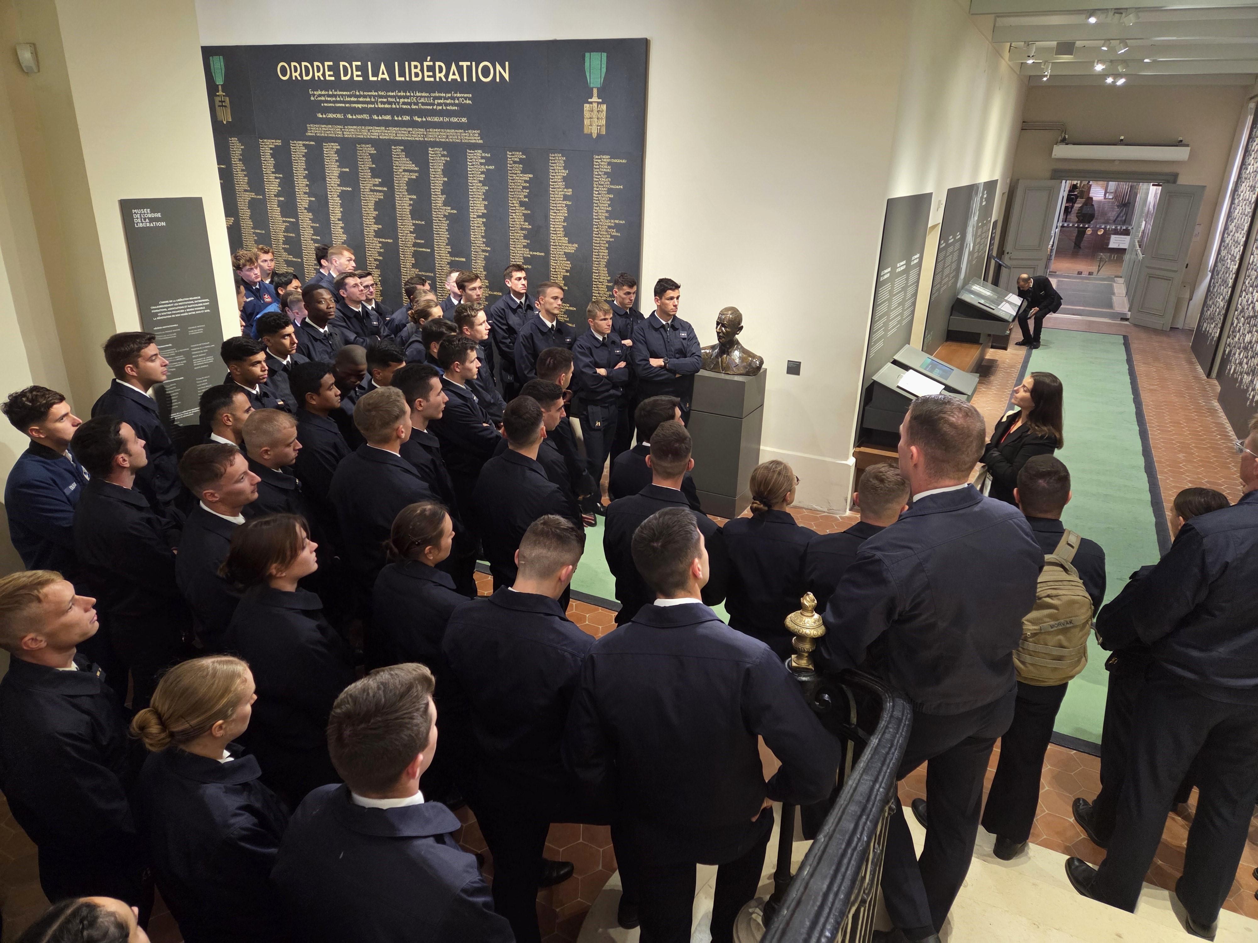 Le 28 octobre, le musée a accueilli les 150 élèves-officiers de la promotion 2024 de l’école de l’Air et de l’Espace pour une journée de visite des collections permanentes. Après un mot d’introduction du délégué national, le général Burkhard, tous ont eu l’occasion de rendre hommage à celui qui a donné son nom à leur promotion : le lieutenant Joseph Kessel, médaillé de la Résistance et célèbre auteur de L’Armée des ombres.