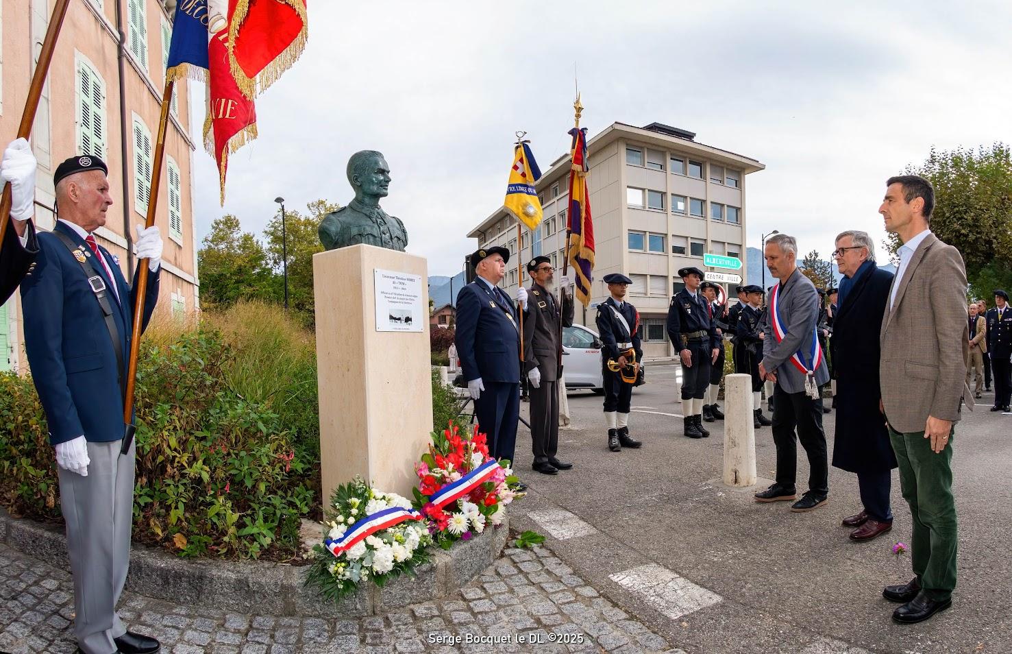 Le dimanche, une cérémonie a été organisée devant le buste du Compagnon Tom Morel, dans le centre d’Annecy, en présence de porte-drapeaux, d’un piquet d’honneur du 27e BCA, de monsieur Loic Hervé, vice-président du Sénat, de monsieur Antoine Armand, député et arrière-petit-fils du Compagnon Louis Armand, de monsieur Antoine de Menthon, maire de Menthon-Saint-Bernard et président de l’association des Glières, du lieutenant-colonel Ludovic Rougelot DMD adjoint et de monsieur Patrick Lecuppre, directeur départemental de l’ ONaCVG.
