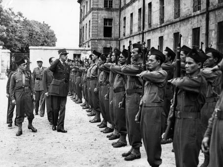Le 20 septembre 1945, le général de Gaulle, président du Gouvernement provisoire, accompagné du général Legentilhomme, nouveau gouverneur militaire de Paris, du capitaine Hervé, commandant du Détachement du Pacifique à Paris, et d’André Diethelm, ministre de la Guerre, passe en revue ce Détachement. Il s’agit du dernier jour dans la capitale française de ces hommes venus de l’Outremer et qui ont combattu courageusement au sein de la France libre pour la libération du territoire.