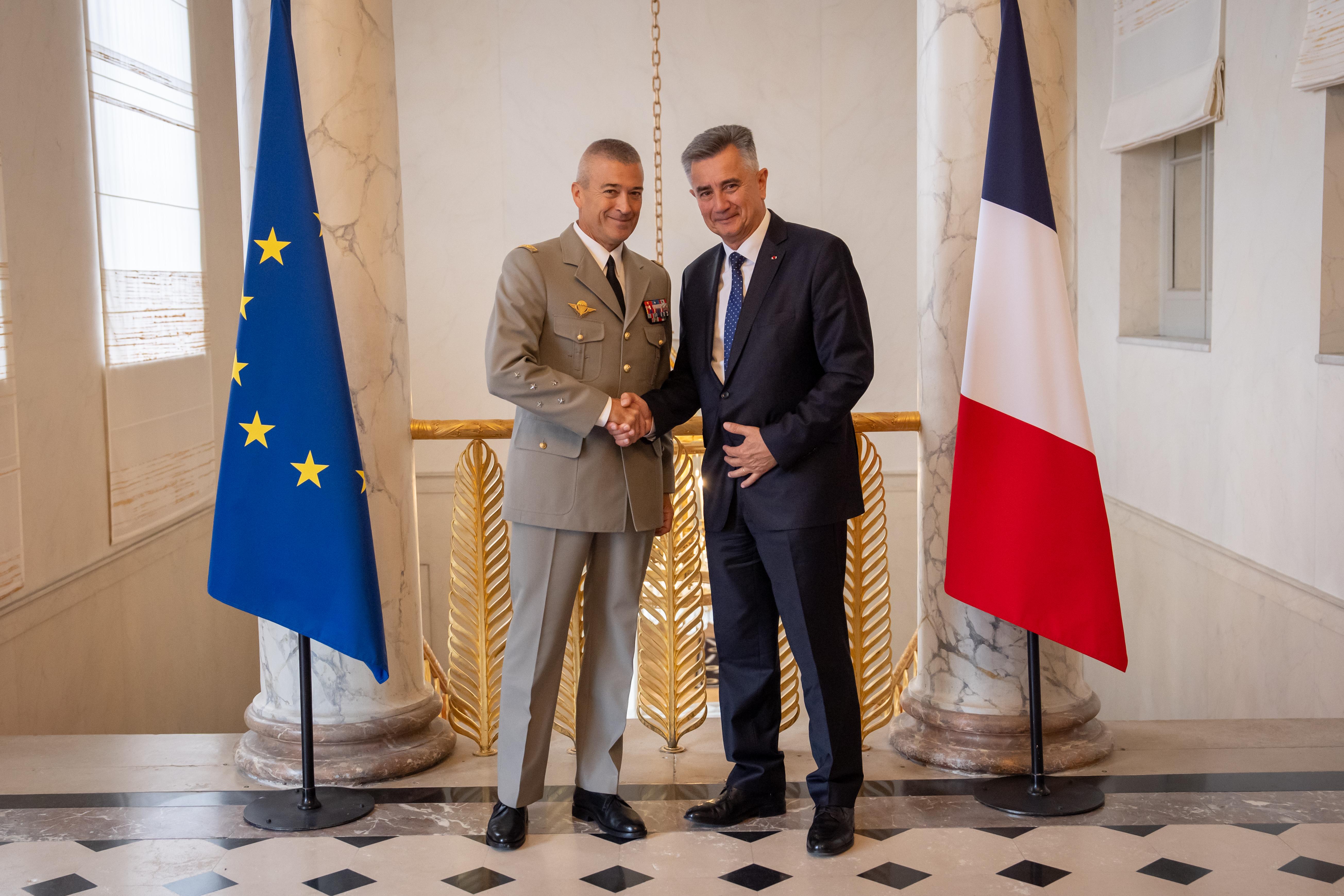 J’ai l’honneur et le plaisir de porter à votre connaissance que le chef de l’Etat a nommé à cette responsabilité, pour prise de fonction le 1er octobre 2025, le général d’armée Thierry Burkhard, ayant quitté les fonctions de chef d’état-major des Armées le 25 août 2025.