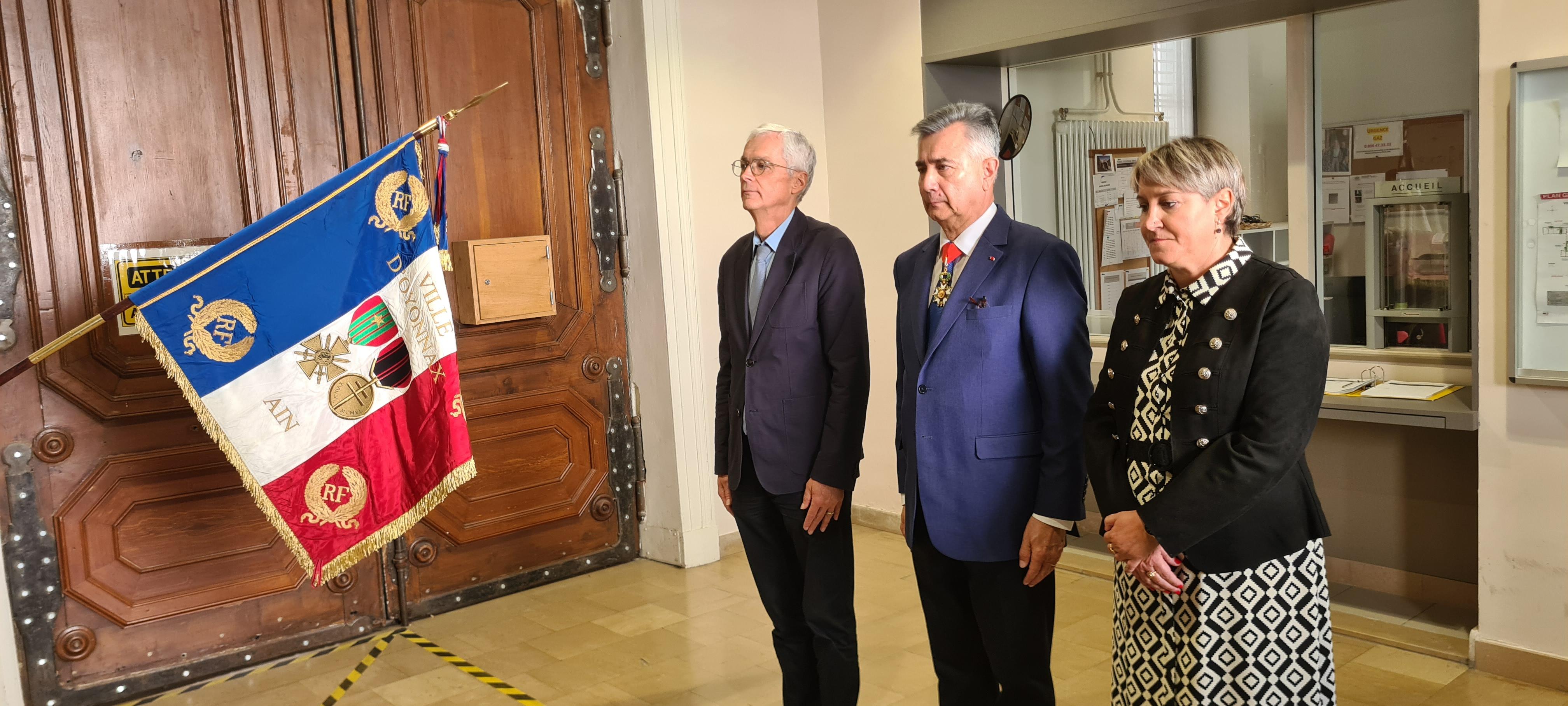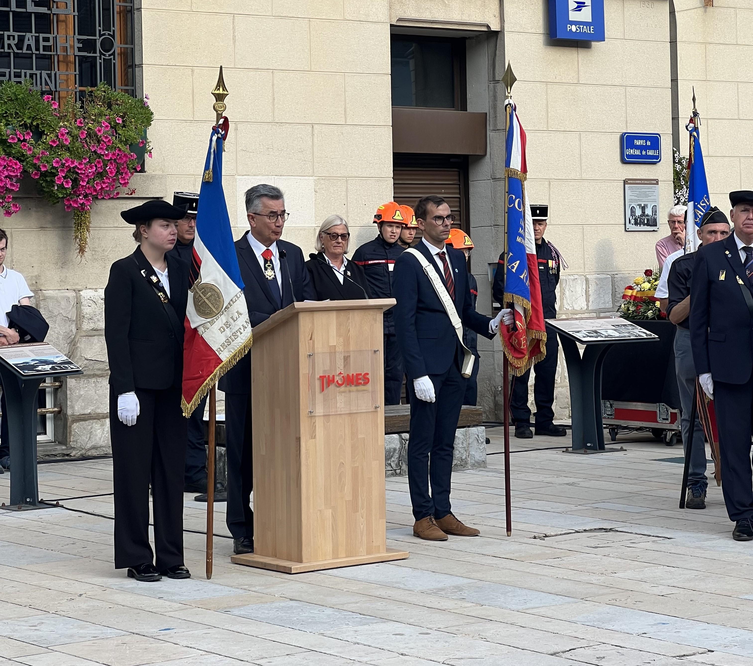 Le 20 septembre, à Thônes (Haute-Savoie), le délégué national de l’Ordre de la Libération, le général Baptiste, présidait la cérémonie de passation du drapeau des communes médaillées de la Résistance française.