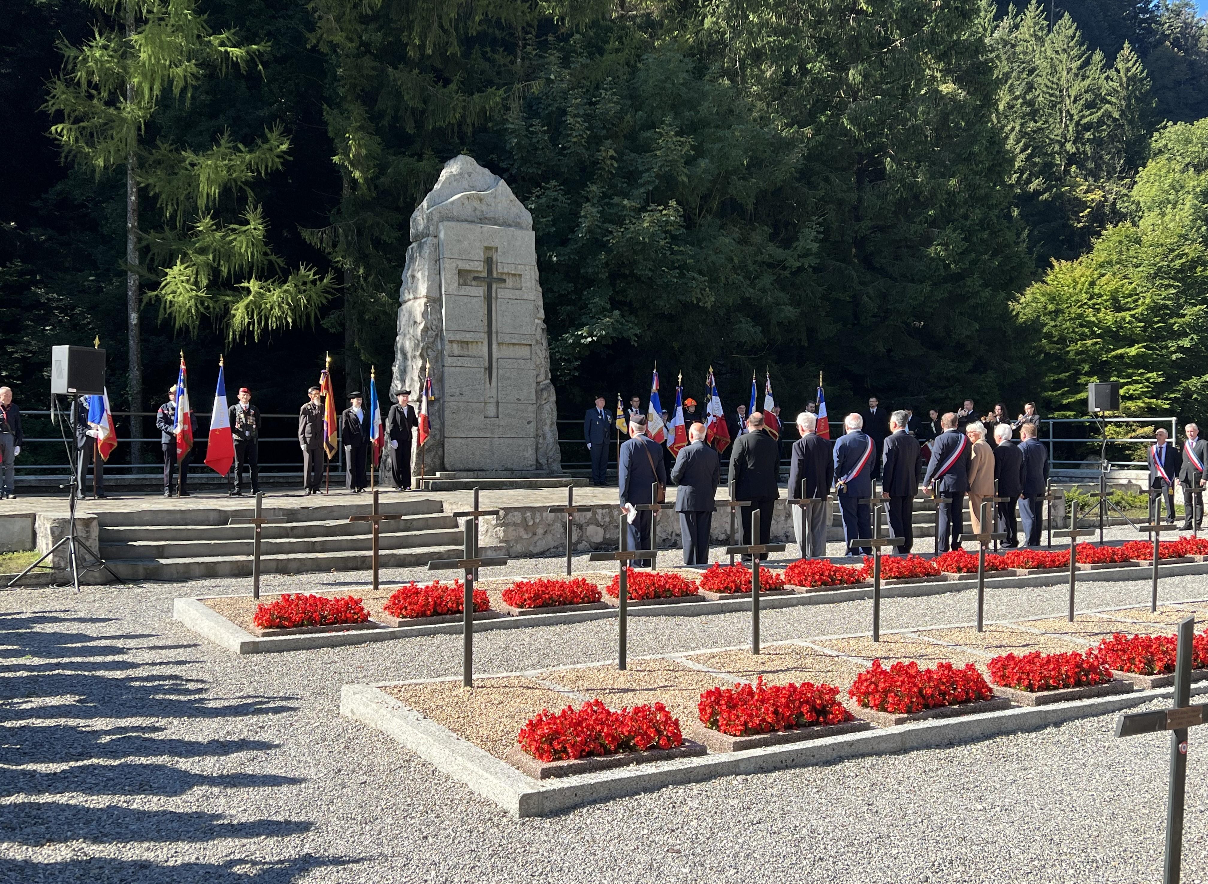 Profitant de ce déplacement à Thônes, le général Baptiste et Fabrice Bourrée, responsable du service de la médaille de la Résistance, ont déposé une gerbe au monument de la nécropole de Morette. Le délégué national et le maire de Thônes en ont déposé également une au monument situé sur le plateau des Glières.
