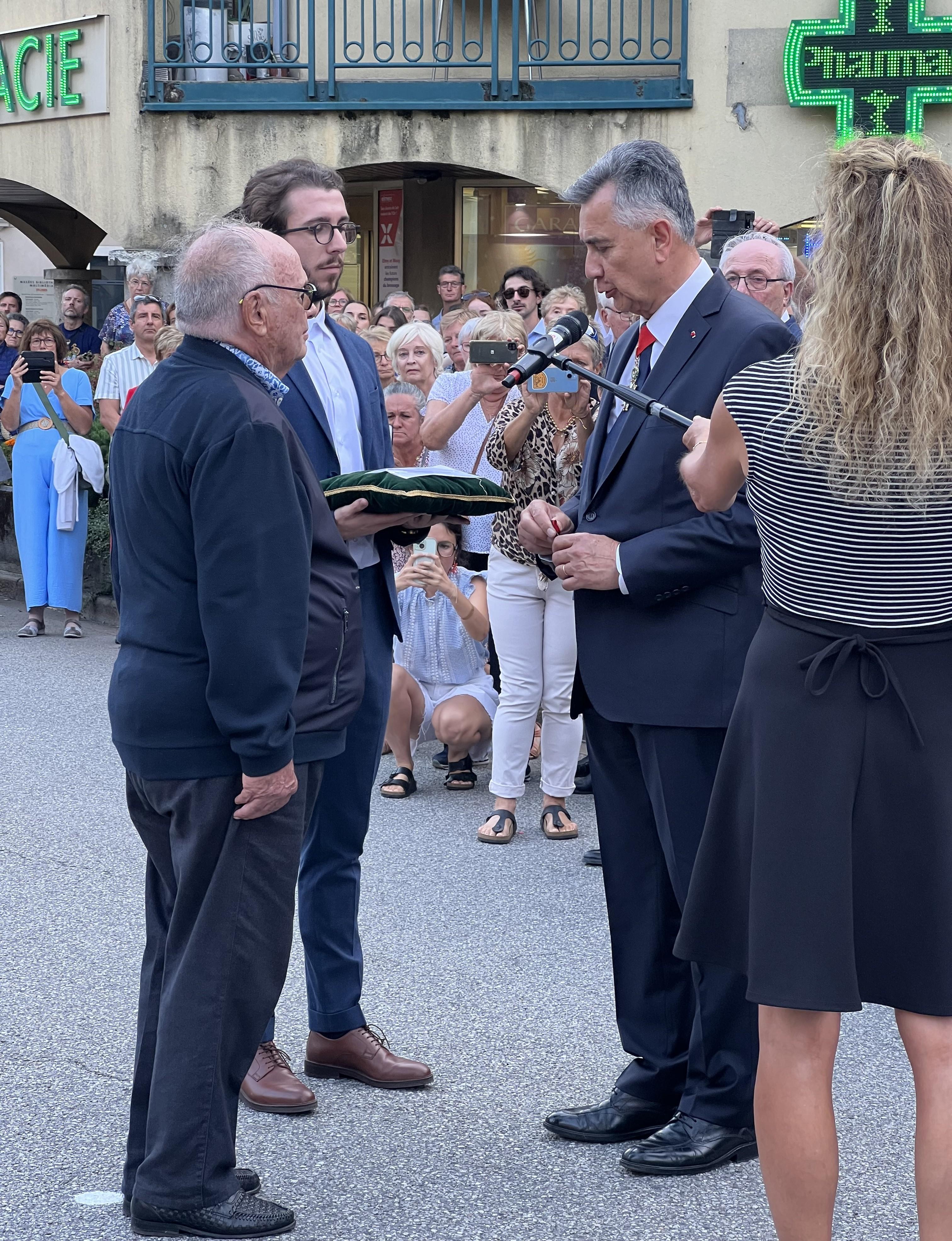 Au cours de cette cérémonie, le délégué national, en sa qualité de président de la commission nationale de la médaille de la Résistance française, a remis à Roland Atrux la médaille de la Résistance française décernée à titre posthume à son père, Camille Atrux, résistant des Glières, mort pour la France, par décret du 8 juillet 2025.
