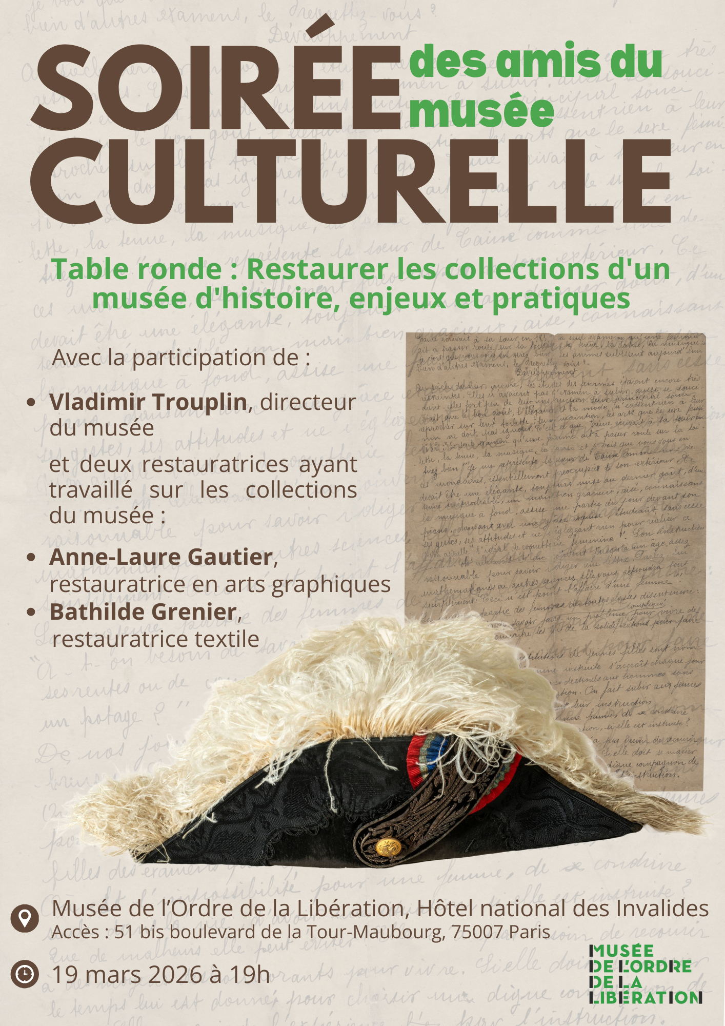 À l’occasion de la soirée culturelle de la société des amis du musée, nous vous proposons une table ronde consacrée à la restauration des collections d’un musée, pour explorer les enjeux, méthodes et pratiques de ce travail souvent discret mais essentiel.