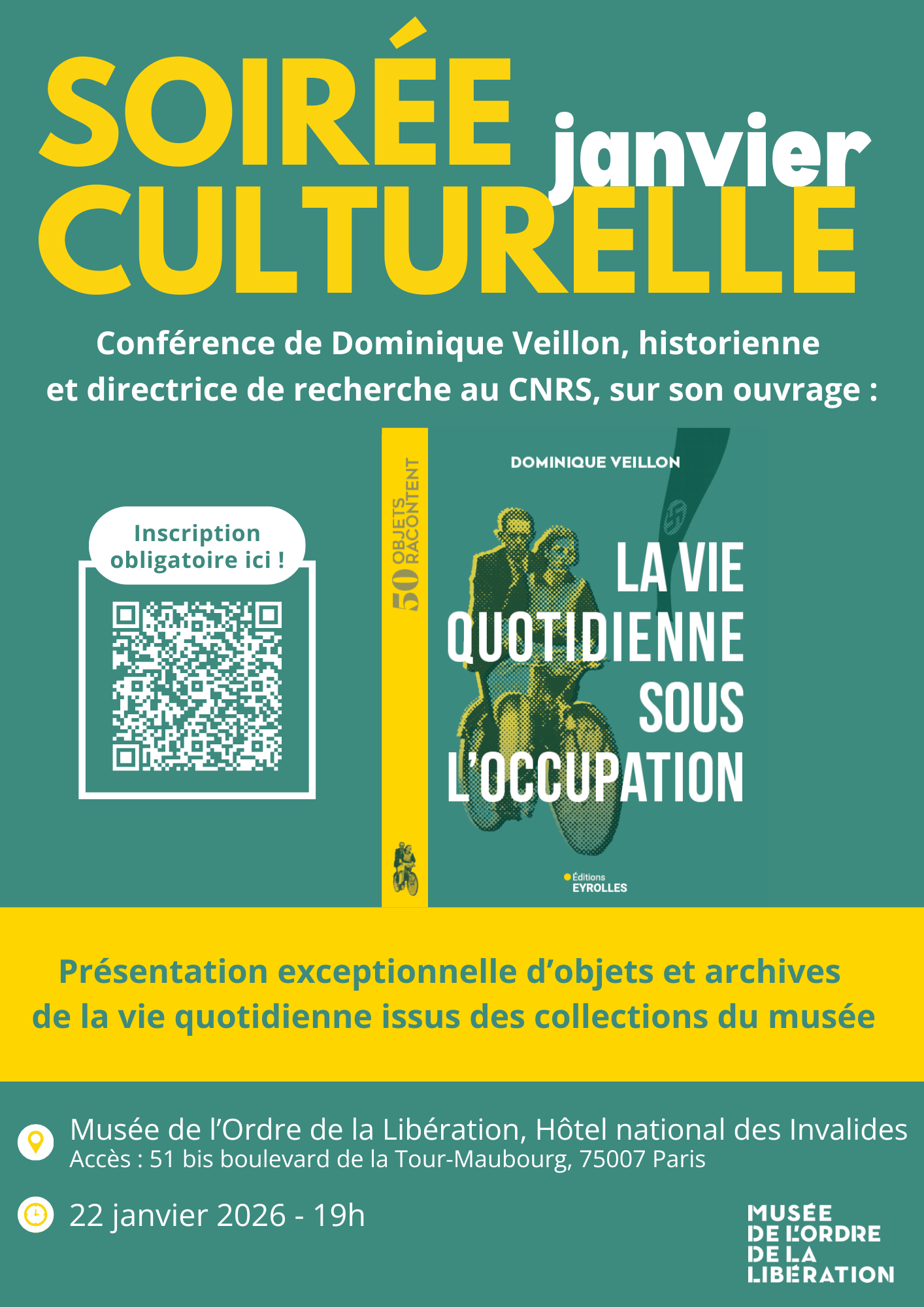 À l’occasion de la première soirée culturelle de l’année, le musée propose une conférence dédiée au livre La vie quotidienne sous l’Occupation, présentée par son autrice, l’historienne Dominique Veillon.