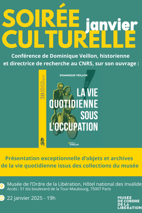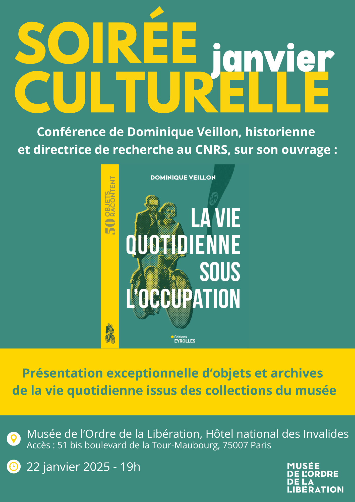 À l’occasion de la première soirée culturelle de l’année, le musée propose une conférence dédiée au livre La vie quotidienne sous l’Occupation, présentée par son autrice, l’historienne Dominique Veillon.