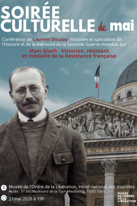 Le 21 mai, l’historien Laurent Douzou, professeur émérite des universités et historien de la Résistance, animera une conférence sur le parcours et l’héritage de Marc Bloch, résistant et titulaire de la médaille de la Résistance française.